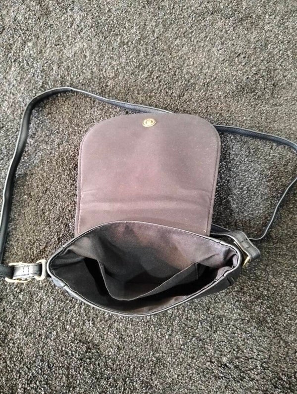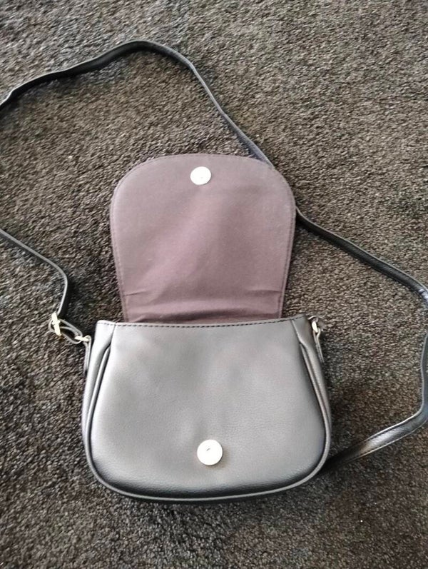 Made from polyurethane, this bag is sturdy and durable. It features a magnetic closure to keep your essentials safe and an adjustable strap to easily string over your shoulder.